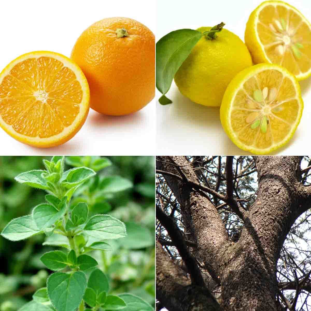 スイートオレンジ精油、マジョラムスイート精油、ゆず精油、シダーウッドアトラス精油、ブラックペッパー精油、シナモンリーフ精油